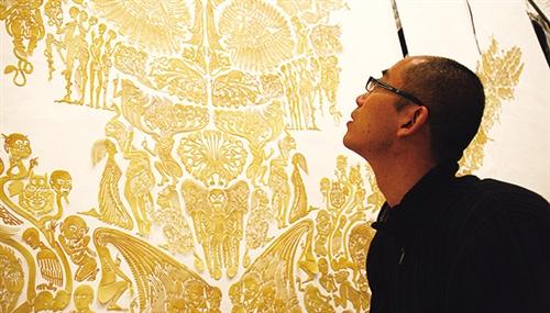 陜西非遺項(xiàng)目華縣皮影制作技藝的代表性傳承人汪天穩(wěn)則與另一位參展藝術(shù)家鄔建安相識已久。十多年前,還在讀研究生的鄔建安已和汪天穩(wěn)結(jié)識。兩人第一次見面后,就決定要一起做一些皮影作品。2015年,兩人合作展覽“化生:《白蛇傳》的古本與今相”,就是用當(dāng)代視覺藝術(shù)創(chuàng)作的觀念與形態(tài),結(jié)合傳統(tǒng)皮影的樣式語言講述了《白蛇傳》的故事。鄔建安曾說:“這是依托傳統(tǒng)皮影語言而作的當(dāng)代藝術(shù)創(chuàng)作。它不是傳統(tǒng)的,而是當(dāng)代的,不再是皮影,而是使用傳統(tǒng)皮影的工藝去創(chuàng)作全新的當(dāng)代藝術(shù)作品?!?/p>