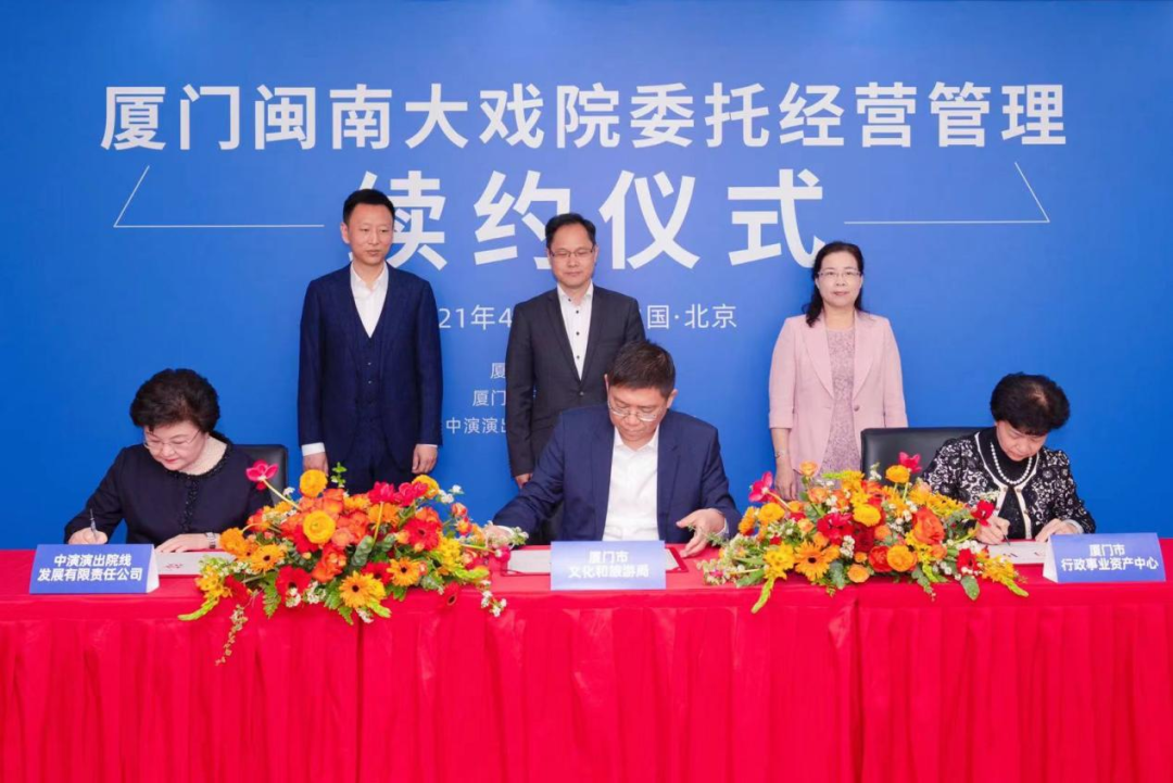 2021年4月17日上午,中國對外文化集團總部舉行廈門閩南大戲院委托經營管理續約儀式。根據協議,集團旗下中演院線對廈門閩南大戲院的受托運營管理期將延長至2025年。本次合作續簽代表了廈門市政府對中國對外文化集團旗下中演院線過去八年來經營管理工作的高度認可,標志著雙方的“央地合作”更加穩固、更加緊密。