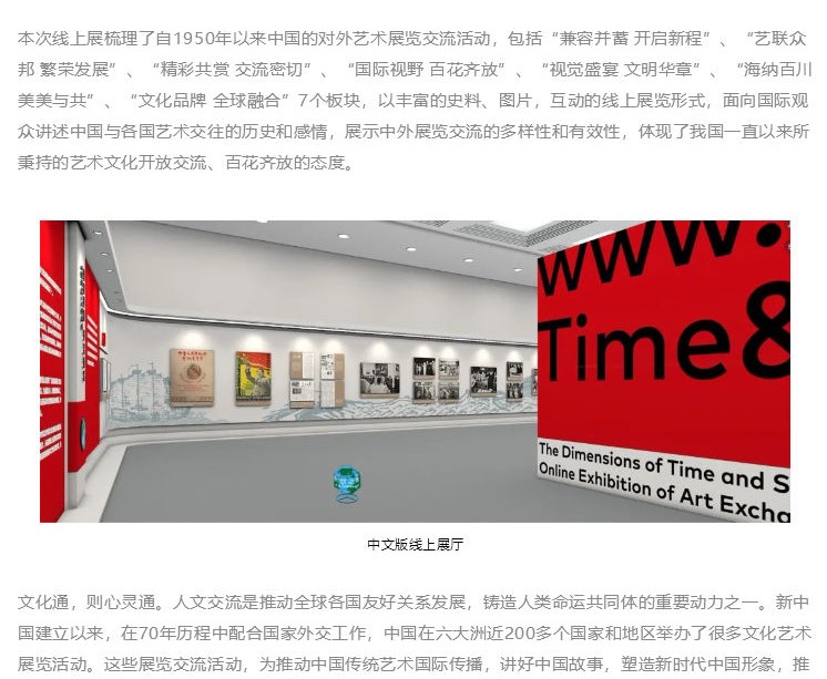近日,“時(shí)空之維—中國與世界的藝術(shù)交往”線上展成功發(fā)布。展覽由中國對(duì)外文化集團(tuán)有限公司主辦,中國對(duì)外藝術(shù)展覽有限公司承辦,以中、英、法、阿、意、西六種語言呈現(xiàn)。
