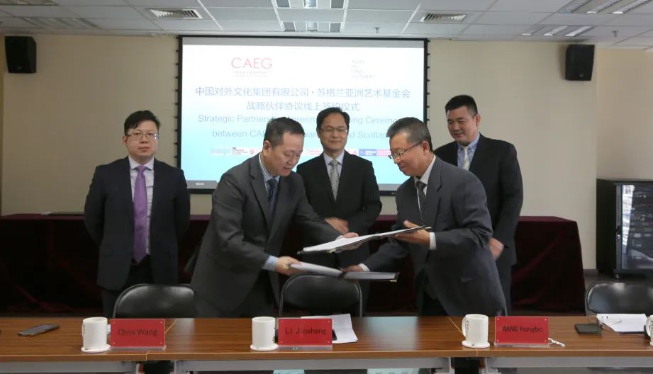 5月13日下午,中國對外文化集團有限公司與蘇格蘭亞洲藝術(shù)基金會線上簽署戰(zhàn)略伙伴協(xié)議,就整合各自品牌和社會資源優(yōu)勢、促進中國優(yōu)秀文化藝術(shù)和城市品牌通過愛丁堡藝術(shù)節(jié)平臺走向世界舞臺,推動愛丁堡藝術(shù)節(jié)與中國城市品牌相結(jié)合、將藝術(shù)節(jié)優(yōu)秀文化藝術(shù)產(chǎn)品引進中國,通過愛丁堡藝術(shù)節(jié)實施駐地國際(中國)藝術(shù)創(chuàng)作計劃、青年藝術(shù)人才及文化產(chǎn)業(yè)和藝術(shù)節(jié)管理人才培養(yǎng)培訓等工作搭建5年合作框架。