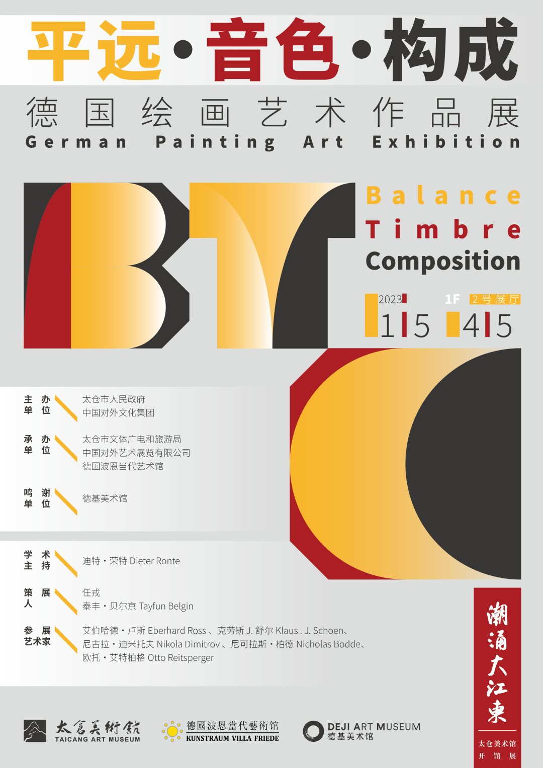由太倉市人民政府、中國對外文化集團主辦,太倉市文體廣電和旅游局、中國對外藝術展覽有限公司、德國波恩當代藝術館承辦的“平遠?音色?構成——德國繪畫藝術作品展”于1月5日亮相“潮涌大江東——太倉美術館開館展”。