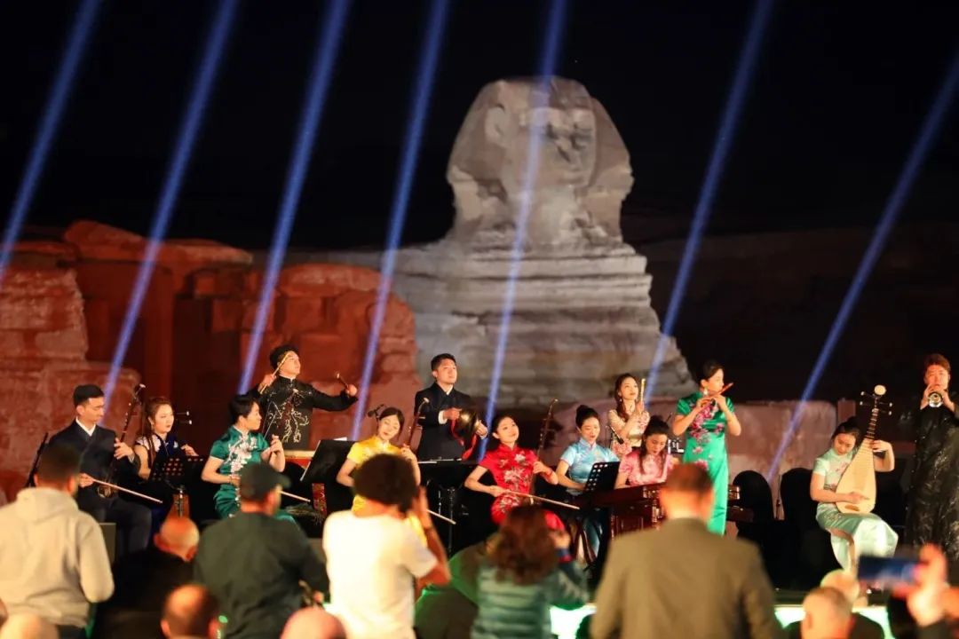 當地時間4月3日晚,由中國文化和旅游部、埃及旅游和文物部、中國駐埃及大使館共同主辦的中國-埃及民族音樂會在埃及開羅吉薩金字塔古跡區舉辦。中國文化和旅游部部長胡和平、埃及旅游和文物部部長伊薩、埃及文化部部長蓋拉尼、中國駐埃及大使廖力強,以及中埃各界人士600余人出席活動。