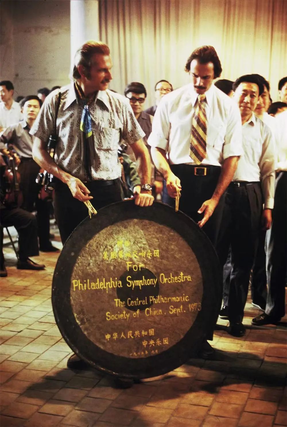 1973年,費(fèi)城交響樂團(tuán)中國之行收到中央樂團(tuán)贈予的禮物:一面直徑1.1米的大鑼。