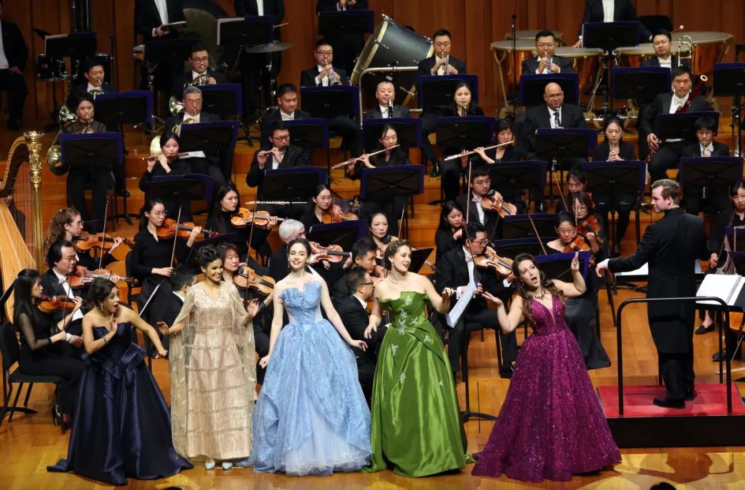 詩人張繼的《楓橋夜泊》寫盡了羈旅之思、家國之憂。女高音歌唱家埃絲特·莫琳·凱利在演唱時(shí),采用了評彈清唱的形式。異域的中文發(fā)音卻分明帶出了江南水鄉(xiāng)吳語的軟糯婉轉(zhuǎn),令人在嘖嘖稱奇之余,更要慨嘆一句藝術(shù)家為此所做的功課之深。有了前兩首作品蒼茫遼闊和秋夜低徊的意境打底,相繼而出的《詠鵝》則展現(xiàn)了一眾女歌唱家的一派天真與生動活潑。知名編劇鄒靜之就坐在觀眾席中,他情不自禁地告訴澎湃新聞記者,“嘿,演出真是倍兒颯,瞧她們說中文多自信啊。”