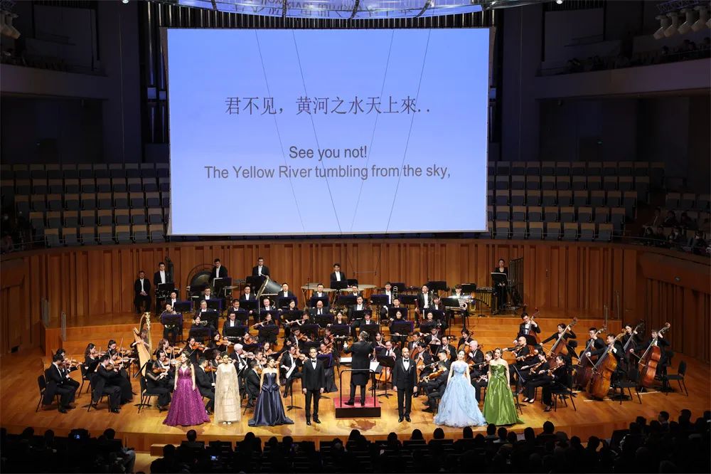 “唐詩的回響”音樂會選段在詩仙李太白的名篇《將進(jìn)酒》中收尾,也結(jié)束了上半場的演出。“與君歌一曲,請君為我傾耳聽。”男、女歌唱家們協(xié)力將《將進(jìn)酒》的五音繁會、氣象不凡演繹得大開大合。“詩情忽翕忽張,情極悲憤而作狂放,語極豪縱而又沉著。”可謂意境全出。