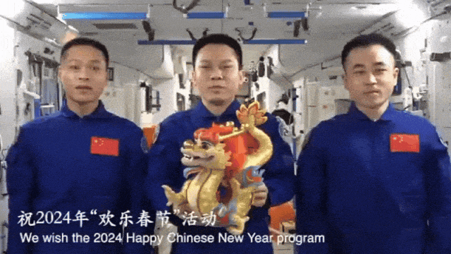 啟動儀式前,駐守在中國空間站的航天員手持“歡樂春節(jié)”吉祥龍,通過視頻方式向現(xiàn)場觀眾和全球華人送上來自“天宮”的龍年新春祝福。隨后,各界嘉賓上臺共同點(diǎn)亮“吉祥龍”彩燈,啟動2024年“歡樂春節(jié)”活動。