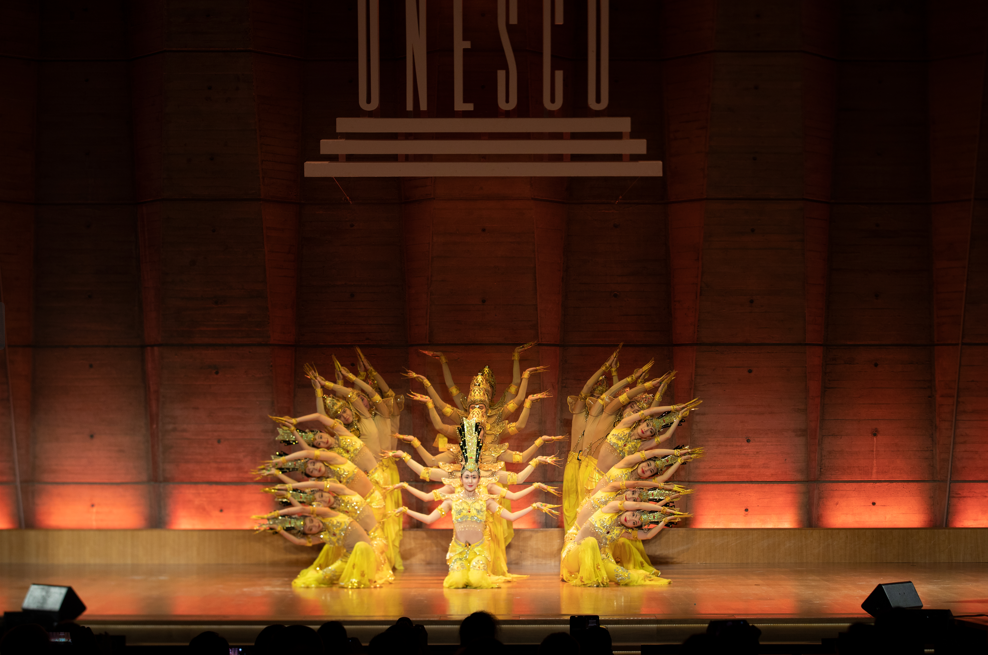 中國殘疾人藝術團團長邰麗華用手語致辭表示,17年前正是在聯合國教科文組織總部,她作為中國殘疾人藝術團代表被授予“和平藝術家”殊榮。17年來,藝術團肩負使命,懷抱夢想,走遍全世界103個國家和地區,同時不忘回饋社會,用演出收入支持海內外公益事業。如今,一代又一代中國殘疾人藝術團演員為實現夢想而永不停歇、奔跑不止、逐夢未來。今晚殘疾人藝術團將繼續用舞蹈講述美麗的故事,用音樂述說美麗的夢想,用特殊藝術傳遞和平友愛的理念。