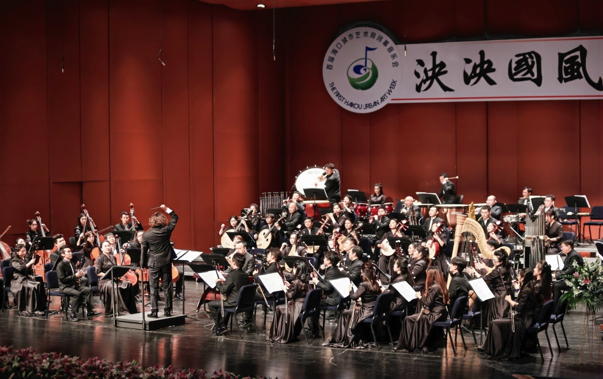 圖片說明:10月1日晚,首屆海口城市藝術(shù)周開幕式音樂會在海南省歌舞劇院舉行,中國交響樂團(tuán)以一臺中西合璧的音樂會拉開了藝術(shù)周的帷幕。