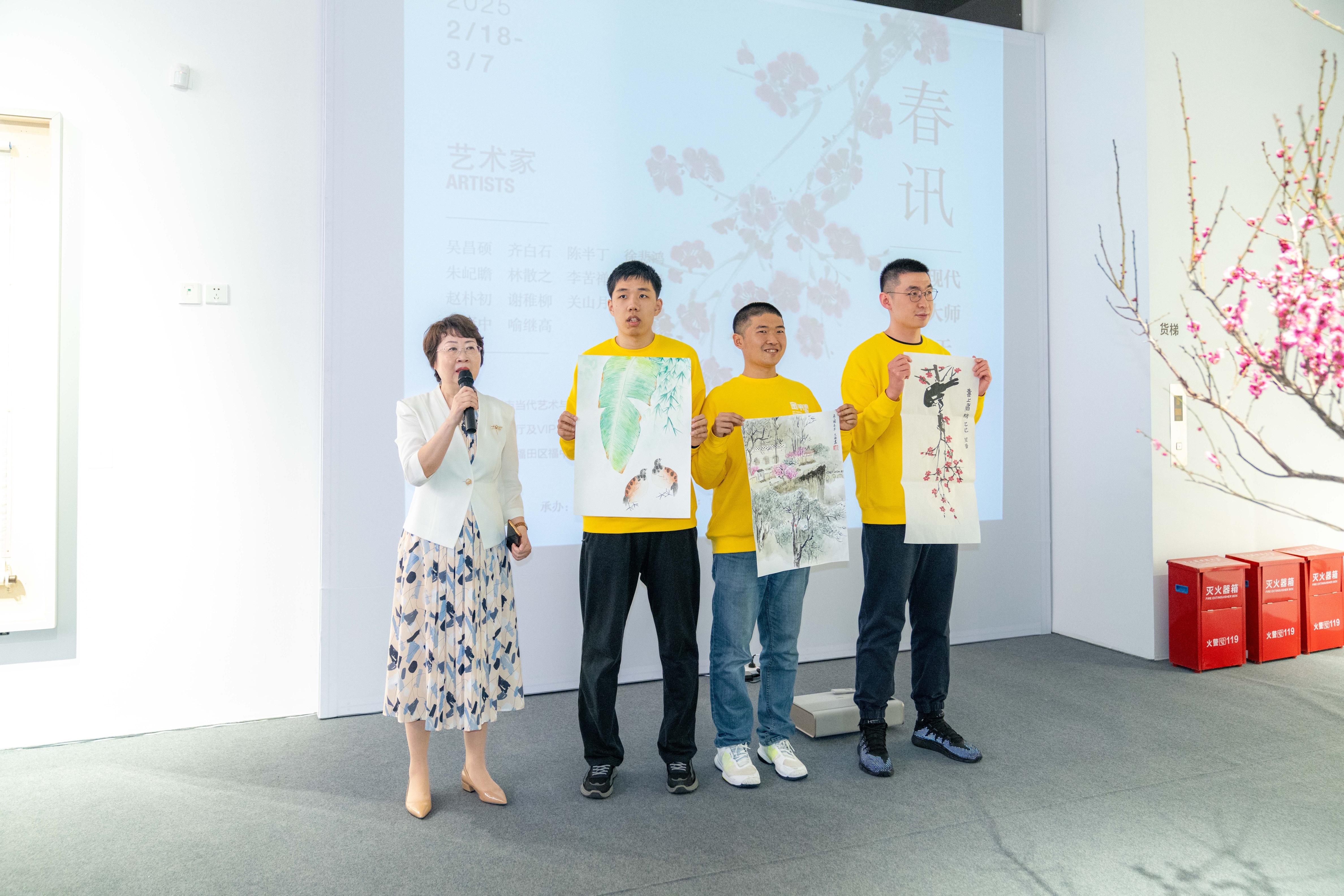 中國對外文化集團攜十六幅中國近現代大師的詠春佳作,在深圳城市規劃與當代藝術館舉辦主題為「春訊——中國近現代大師的春天」典藏展。開幕式現場春意盎然,氣氛熱烈而祥和。紫荊文化集團副總經理薛麗軍、深圳市委宣傳部常務副部長曾相萊,福田區委書記黃偉,福田區委常委、宣傳部部長章海蓉,福田區文廣旅體局黨組書記、局長陳國龍,前海合作區黨工委副書記、前海管理局黨組成員梁珂,光明區委書記蔡穎,光明區文廣旅體局黨組書記、局長包小紅,龍華區文廣旅體局副局長陳海明,鹽田區委常委、宣傳部部長張玉領,寶安區委宣傳部副部長孫簫韻,寶安區文廣旅體局副局長張瓊等出席活動。