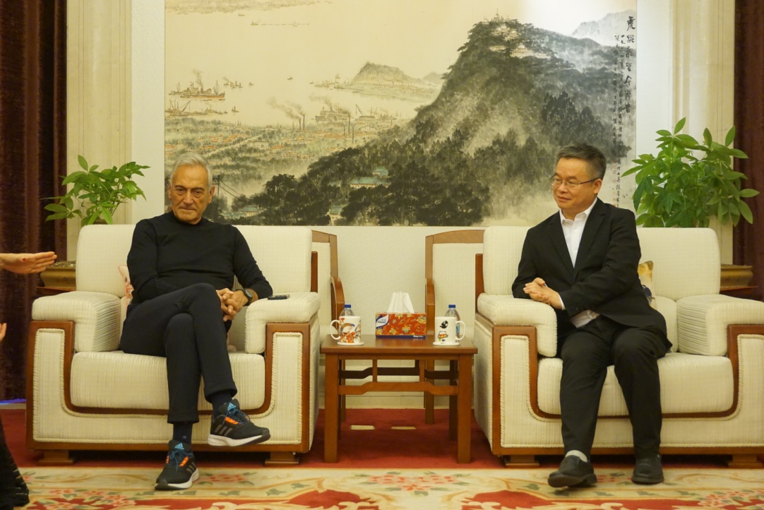 4月20日,中國對外文化集團有限公司董事、總經理郭利群在居然大廈17層貴賓室會見了意大利足協主席、音樂劇《神曲》制作人加布里埃爾?格拉維納一行。雙方圍繞國際文化藝術交流、文化與體育融合發展、探索合作項目等內容進行了深入探討。